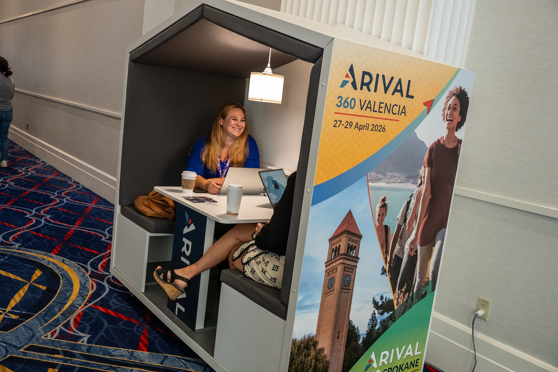 This is a new product the Arival team tried out at this event. The goal here was to show off a couple of our upcoming events, as well as being a big wall to smack some Arival branding. If you have an amazing conversation in an Arival branded Nook, you're going to remember it was at Arival!
